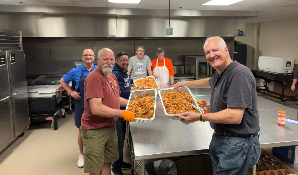 The Knights cook team prepared 60 pounds of pasta for Operation Uplift to help feed the homeless. Pictured L/R are Bob Vedder, Tom Fowler, Joe Terranova, Craig Morrow, Mike Gorman, & Dave Didde. Thank you.